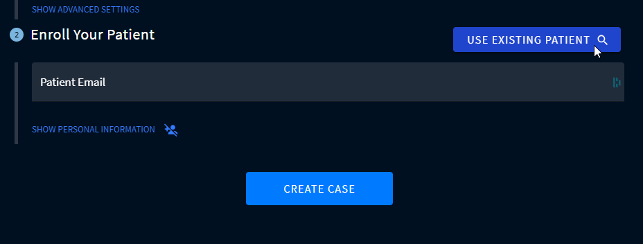 When creating the SECOND case or any SUBSEQUENT cases for the same patient, utilize the "USE EXISTING PATIENT" option to pull the Patient’s ID to all their cases. This ensures seamless integration and organization of all the patient's cases in a single Benchmarc profile.