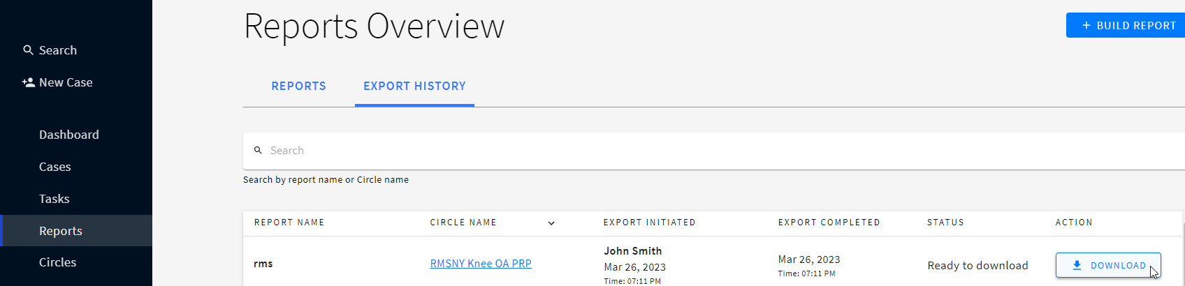 - Go to Reports and click EXPORT HISTORY tab