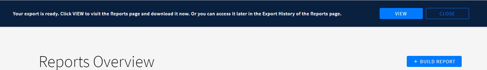 Clicking VIEW on the banner will take you directly to the EXPORT HISTORY tab where you can find your report at the top of the reports list and download it.