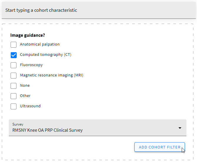 b. Then select the survey/s to retrieve the data from and press ADD COHORT FILTER