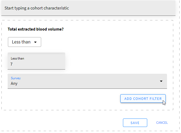 6. Click ADD COHORT FILTER.
