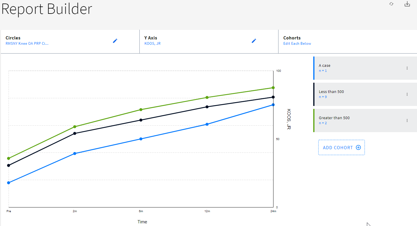 The numerical and/or graphical presentation of real-world data and real-world evidence deriving from observations. The inCytes™ platform allows users to display, filter, selectively aggregate, export, and otherwise prepare reports in a manner suitable to their clinical or scientific objectives.