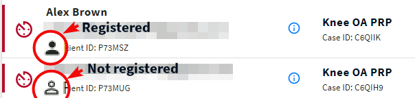 Registered patients are represented by a black icon, while not registered patients are represented by a white icon.