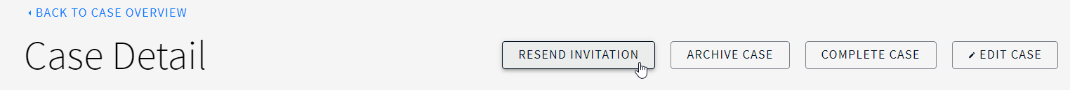 If the patient has not registered yet, you will find a button RESEND INVITATION at the top right of the Case detail screen. Clicking this button will re-invite the patient to the app.
