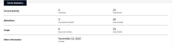 - Cases Shared - the total number of cases created within this Circle including both active and archived cases, as well as cases shared from other Circles